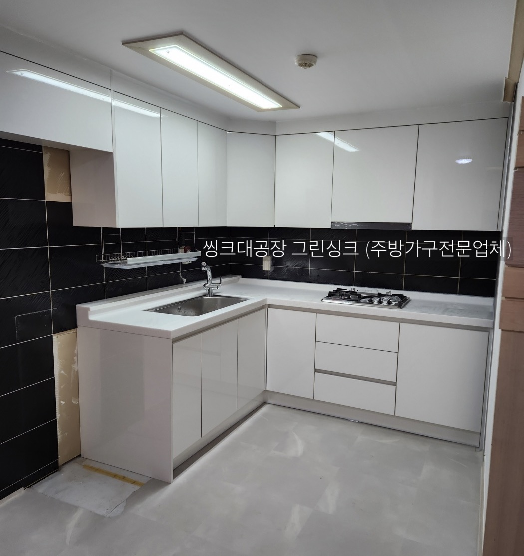 하이그로시 화이트 씽크대 시공